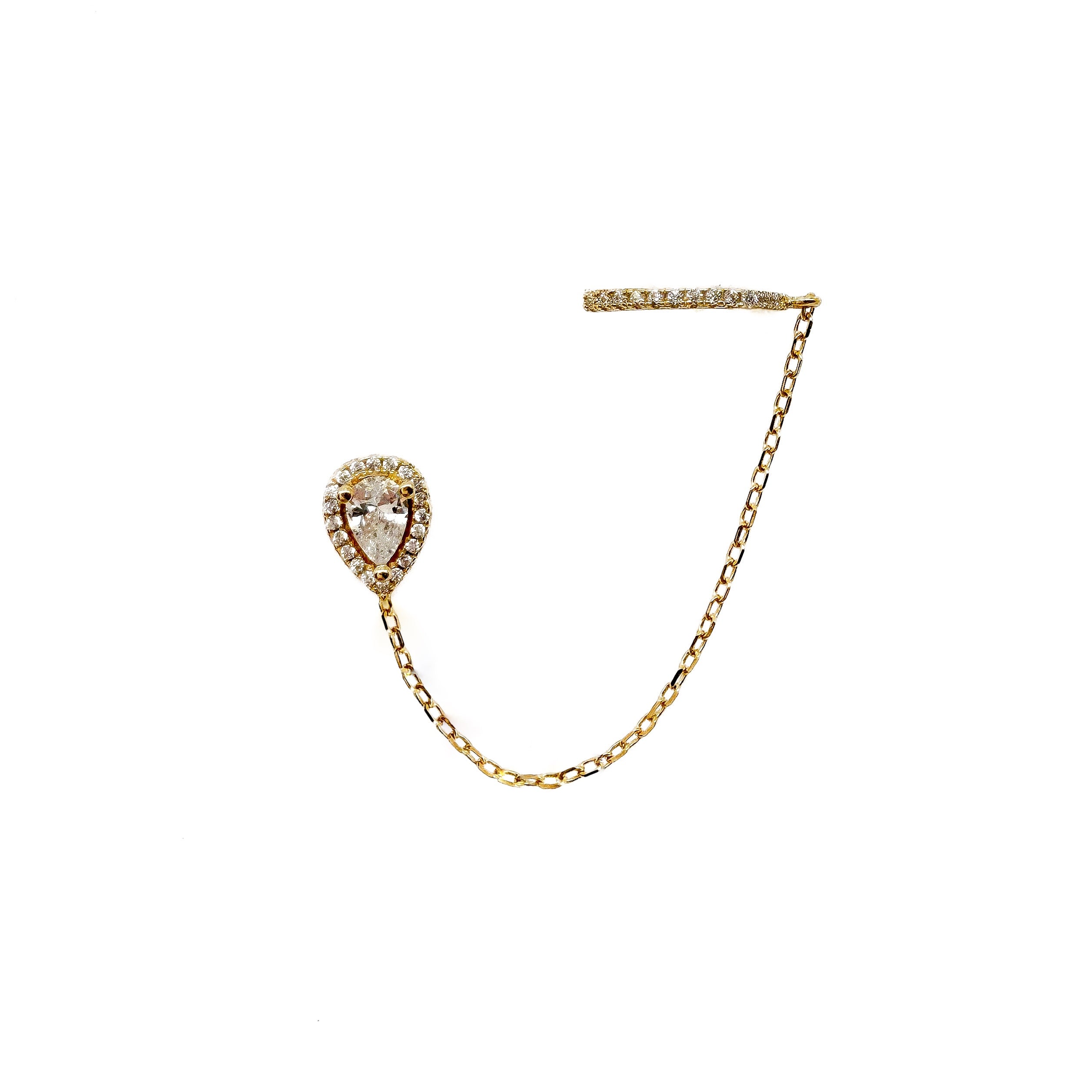 Boucle double, clou zircon poire sertie de zircons et bague d'oreille à poser