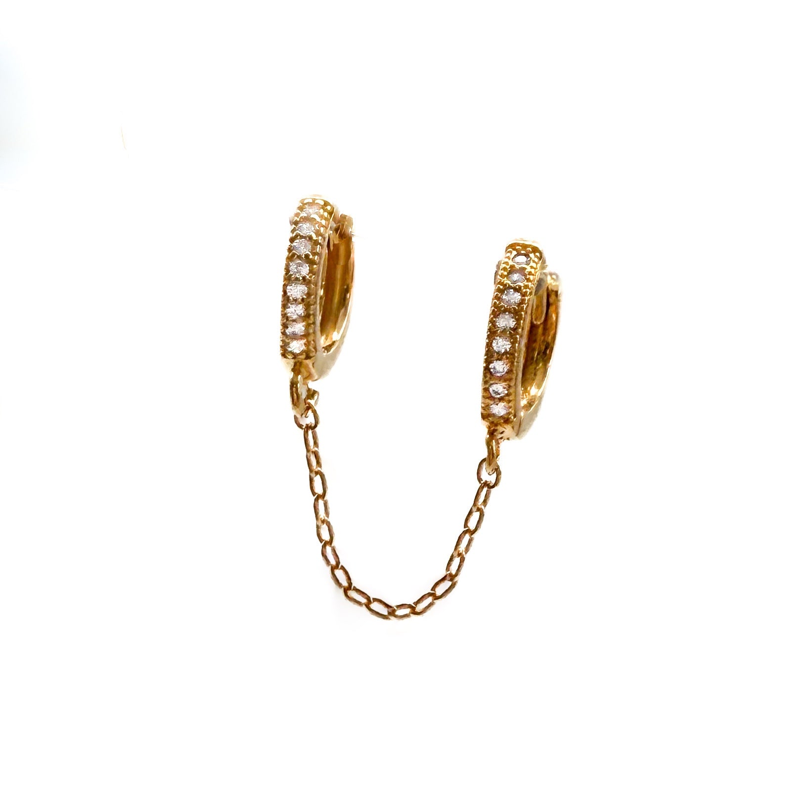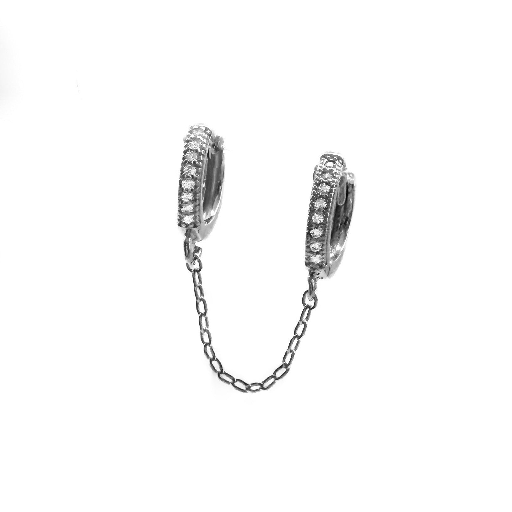 Ces petites créoles doubles, serties de zircons, sont reliées par une chaîne délicate, offrant une touche moderne et élégante à votre style.