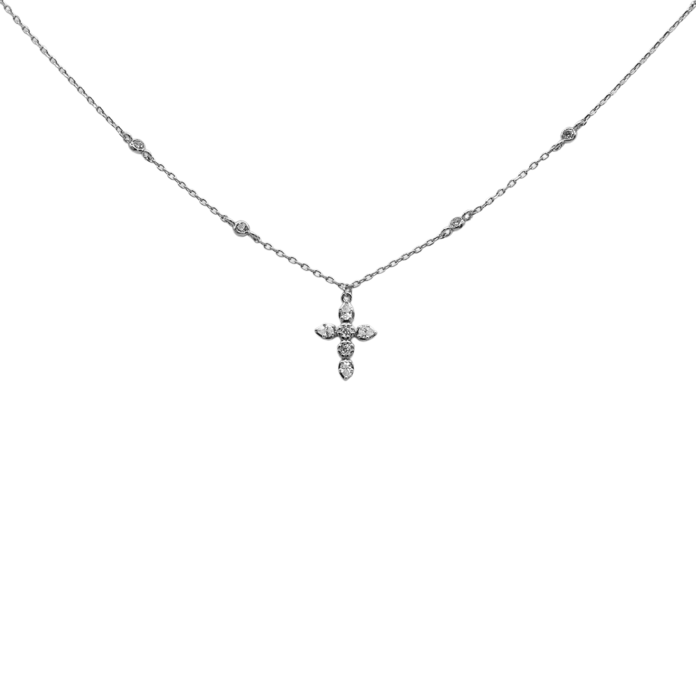 Collier choker raffiné avec pendentif croix de zircons scintillants.