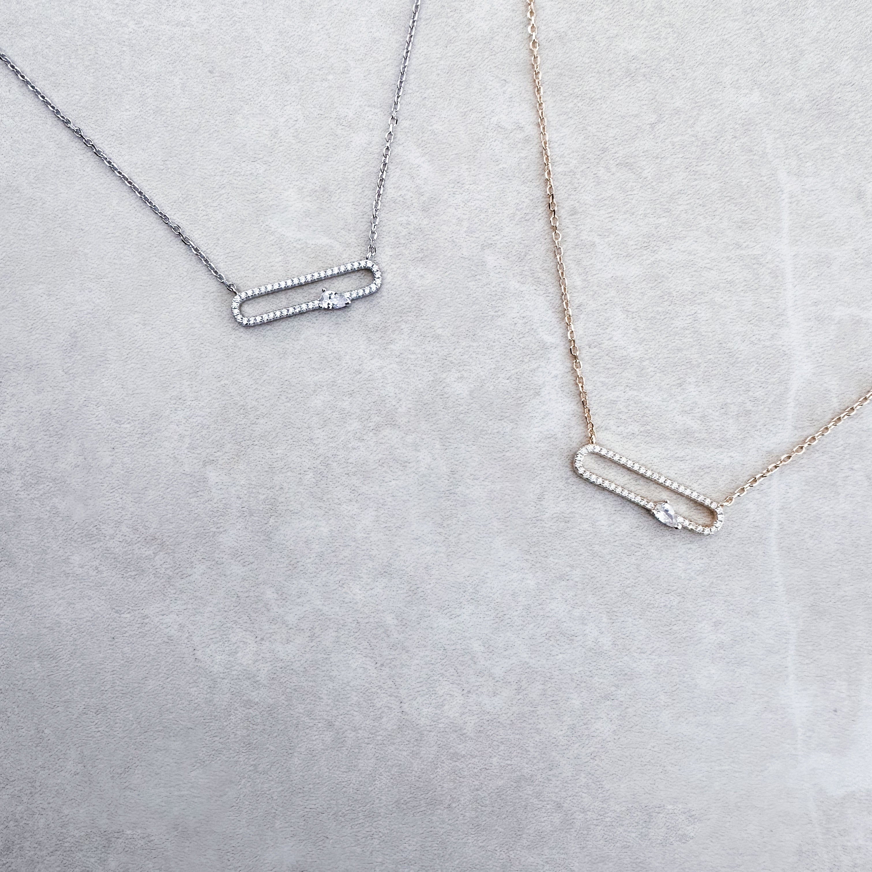Collier Rectangle Arrondi & Pierre Goutte Zircon