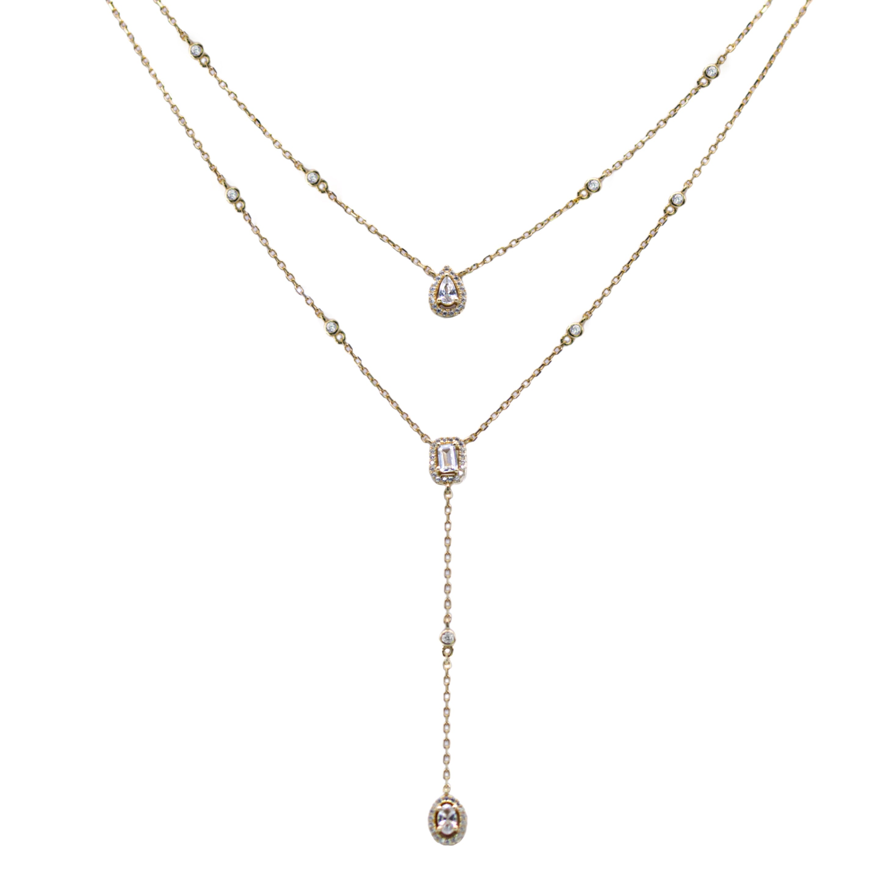 Collier Double Forme Cravate Carré, Ovale et Goutte Zircon